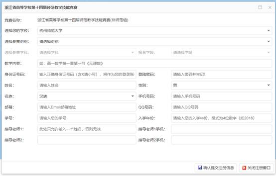 打开“浙江省高等学校第十三届师范教学技能竞赛”报名网址:http://ts.zjnu.edu.cn/ss/ 点击“参赛选手注册”(如图1-1);