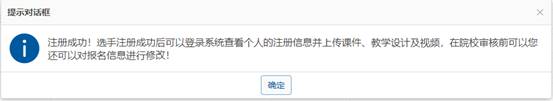 认真填写注册所需要的各项信息,填写完成后点击“确认提交注册信息”(如图1-2),弹出对话框提示注册成功(如图1-3)。
