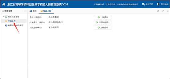 点击系统左侧功能菜单下“作品上传”,可上传课件、教学设计、视频等多个作品。(如图3-1)