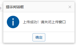上传成功会弹出提示对话框(如图3-5),关闭对话框(如图3-6)。